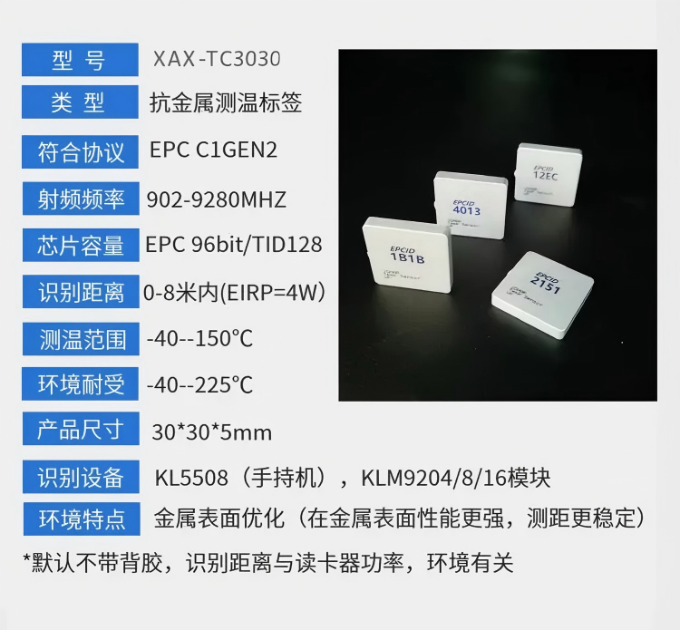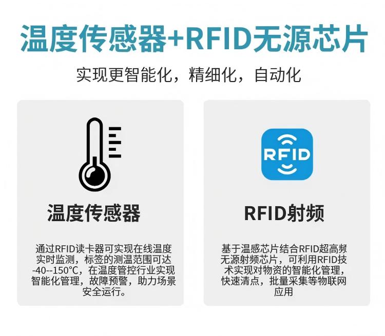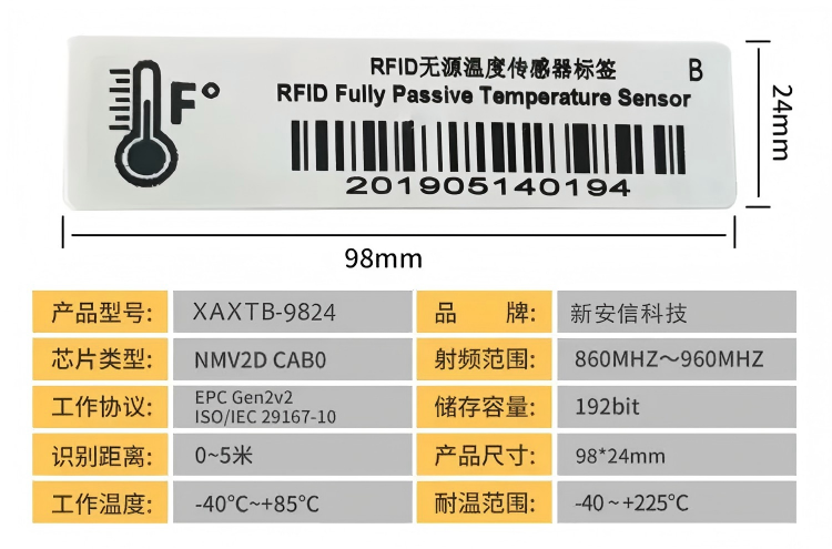 新安信无源RFID温度电子标签 测温范围:-40-150℃ 无源超高频UHF 温度传感器+RFID射频技术,可用于医疗冷链,电力系统(电柜,线缆,设备节点),煤矿,交通设备等方面的温度实时采集和管控。